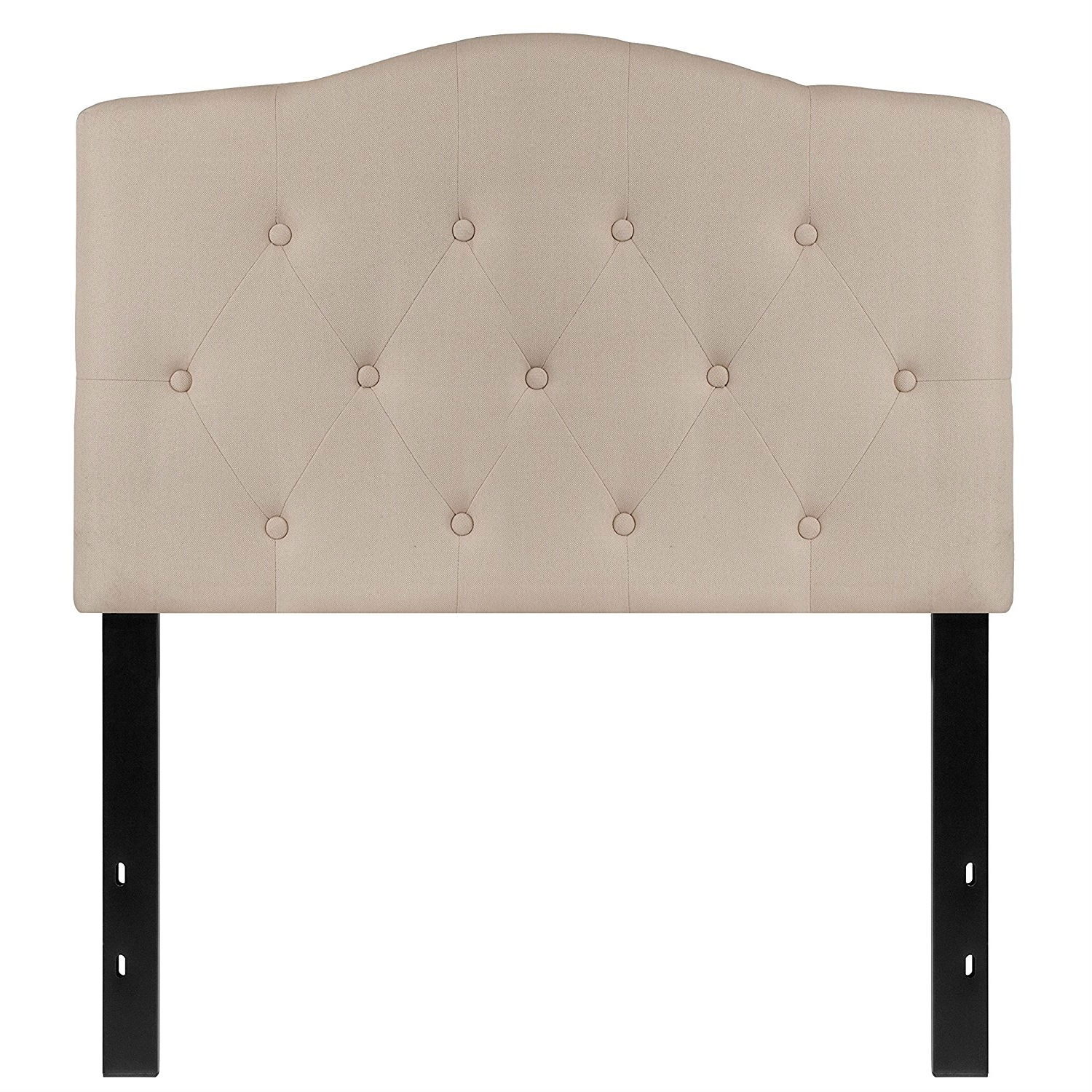 • Twin size Beige Fabric Upholstered Button Tufted Headboard