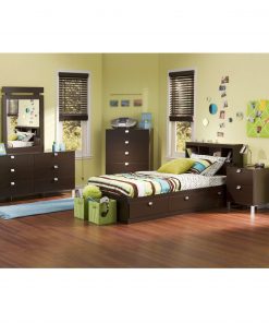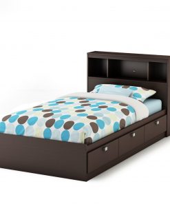 Twin size Contemporary Bookcase Headboard in Chocolate Finish