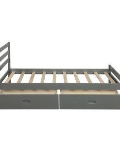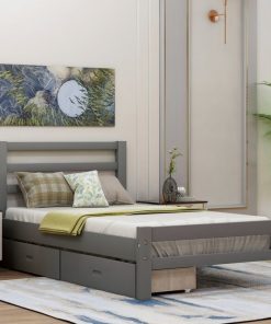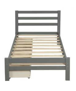 Get organized with the Twin size Gray Low Profile 2 Drawer Storage Platform Bed, The bed comes complete with two underside pull out drawers. Strong, solid wood make up the frame and legs to support your favorite memory foam, latex, or spring mattress (mattress not included), and the simple yet stylish panel design of the headboard and footboard add subtle refinement to any room decor. The modern clean, straight line silhouette makes it easy for this piece to fit into any room; drawers can fit on either side of the platform bed.