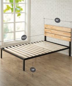 Update your bedroom with this Twin size Heavy Duty Metal Platform bed Frame with Wood Slats and Headboard. Featuring a casually styled headboard and low profile metal frame this platform bed offers strong, durable wood slat support for your spring, memory foam, latex, or hybrid mattress. Ships in one carton for easy assembly. No box spring needed.