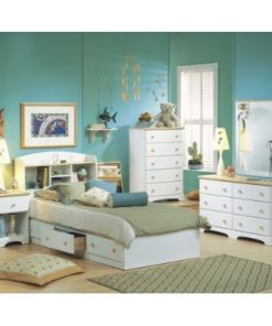 This Twin Size Mates Platform Bed in White/Maple with 2 Storage Drawers features Natural Maple finish wooden knobs and is part of South Shore’s Shaker line. This sturdy mate’s bed provides plenty of convenient.