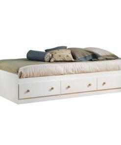 This Twin Size Mates Platform Bed in White/Maple with 2 Storage Drawers features Natural Maple finish wooden knobs and is part of South Shore’s Shaker line. This sturdy mate’s bed provides plenty of convenient.