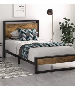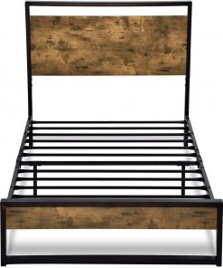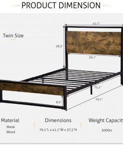 - Twin size Metal Wood Platform Bed Frame with Industrial Headboard