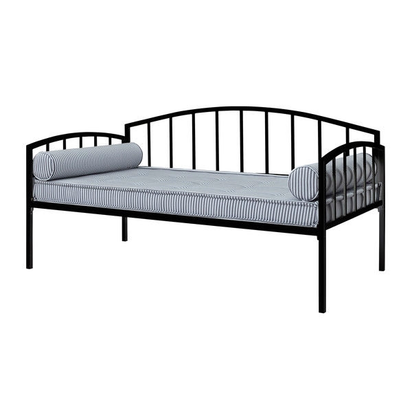 Perfect as a sofa or as a sleeper, this Twin size Modern Black Metal Daybed for Bedroom or Living Room is the perfect addition to any room setting. Its white metal frame and clean, curved design coordinates well with other pieces to best compliment any room décor. This versatile twin-size daybed offers extra seating and sleeps one comfortably. Sturdily constructed, the bed includes metal slats and supporting legs for added support and comfort. No box spring is required with this style of bed.