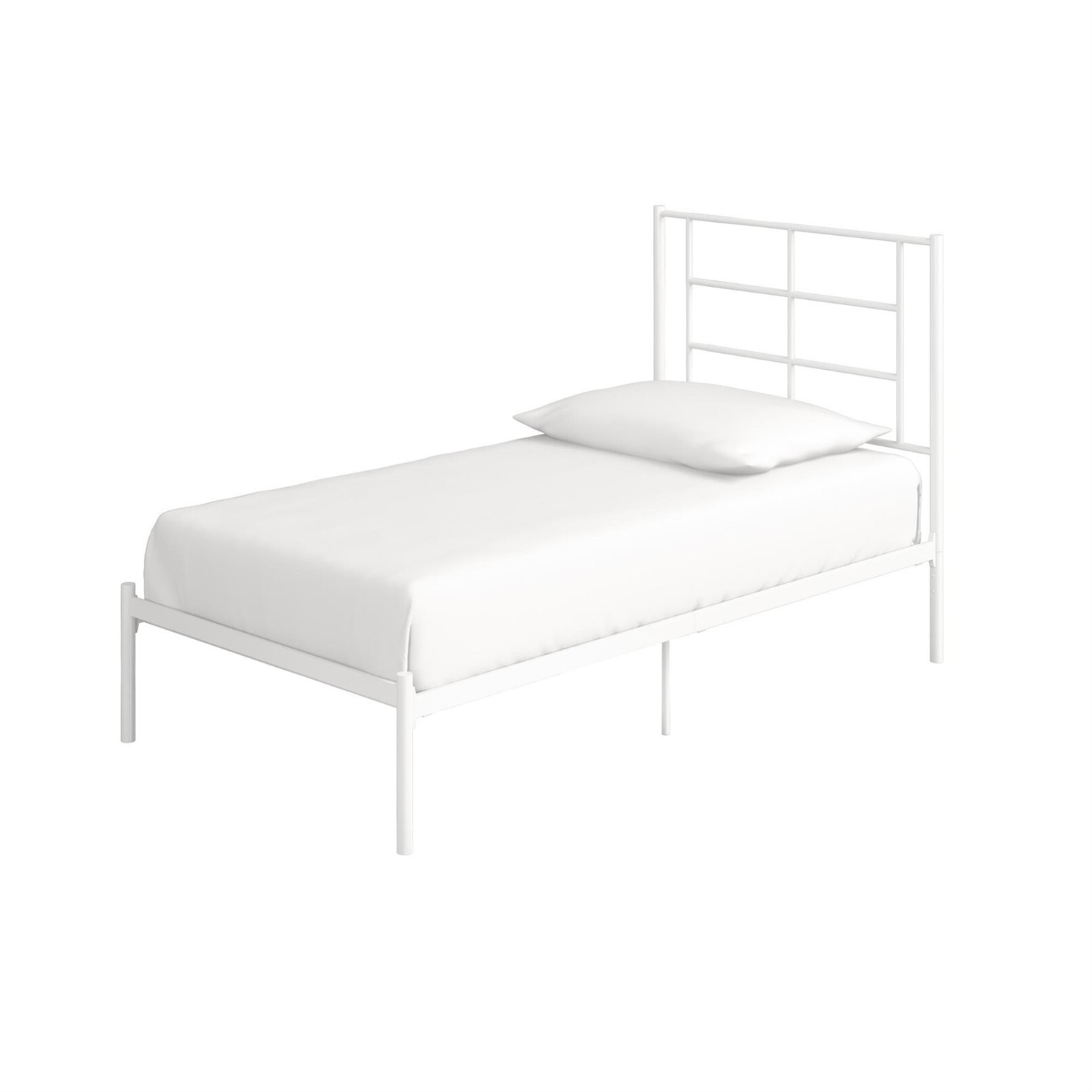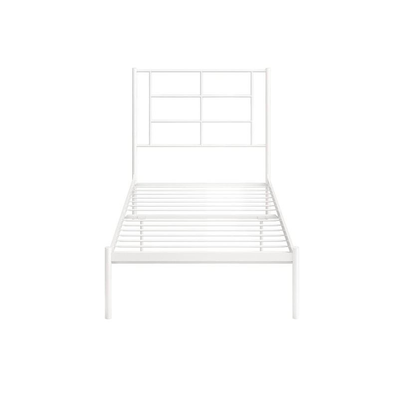 Twin Size Modern White Metal Platform Bed with Geometric Headboard