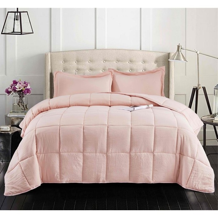 This Twin Size Pink 3 Piece Microfiber Reversible Comforter Set comes with a versatile appeal inspired by the royal essence and charm. The pre-washed technique prevents the quilt from shrinking and makes it extra comfy and soft to give you the treatment of a high-end luxury staycation. Constructed using the top-quality brush microfiber and polyester, this quilt comes with Never ending comfort and durability.