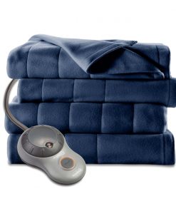 Climb into your toasty bed and sleep soundly in this Twin size Quilted Fleece Heated Electric Blanket in Blue Lagoon. The exclusive Thermofine warming system senses and adjusts temperature to deliver.