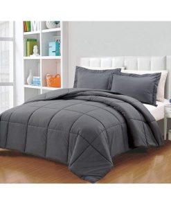 Give yourself peace of mind and sleep in pure comfort each and every night with the Twin Size Reversible Microfiber Down Alternative Comforter Set in Grey. A lightweight and breathable comforter with year-round use, this comforter is made with a soft microfiber polyester fabric and filled with poly fibers. The seams are stitched with double-needle piped edges for enhanced strength which create walls between top and bottom layers, preventing the filling from escaping as well as an aesthetically pleasing appearance. For easy home care, simply machine washes cold and tumble dry low. The comforter remains wonderfully soft and fluffy with no fade or shrinkage.