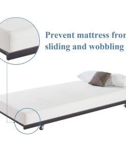 - 4 Heavy Duty Rolling casters built onto the bottom of the trundle bed frame and seven metal slats to support your mattress.