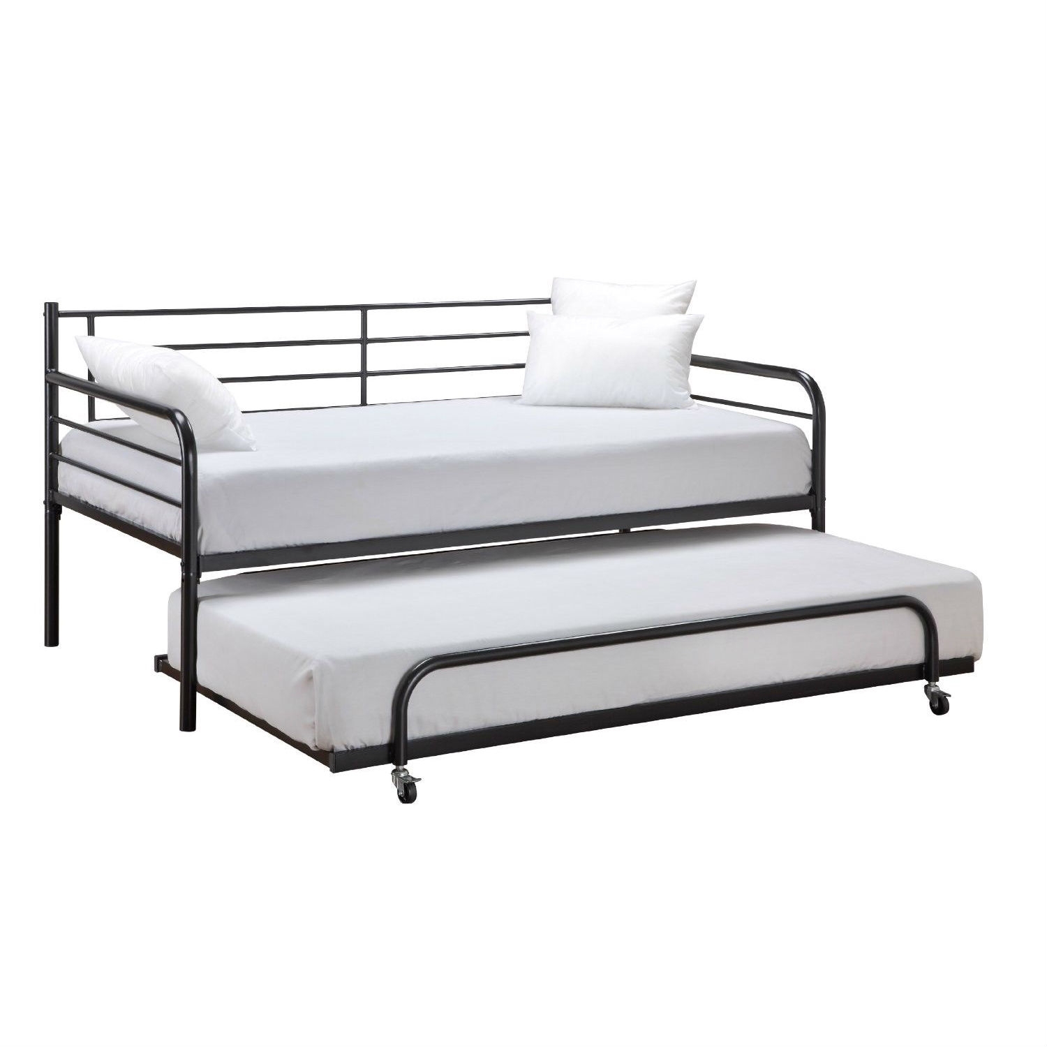 • Twin size Roll Out Trundle Bed Frame in Black Metal
