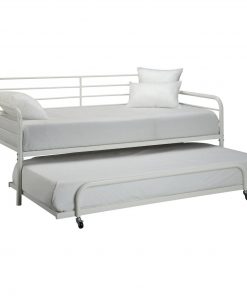 - Twin size Roll Out Trundle Bed Frame in White Metal