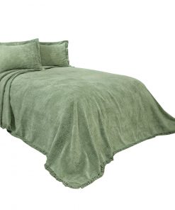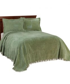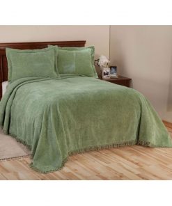 This Twin size Sage Green Cotton Chenille Bedspread with Fringe Edge is an extraplush, 100 cottonribbed chenille bedspreads with additional 3″ fringe adds soft, cozy warmth for supreme sleeping. Available in twin, 108″ long x 80″ wide; full, 108″ long x 96″ wide; queen 115″ long x 102″ wide; king 105″ long x 118″ wide. Machine wash cold with like colors, tumble dry low. Imported. Shams sold separately.