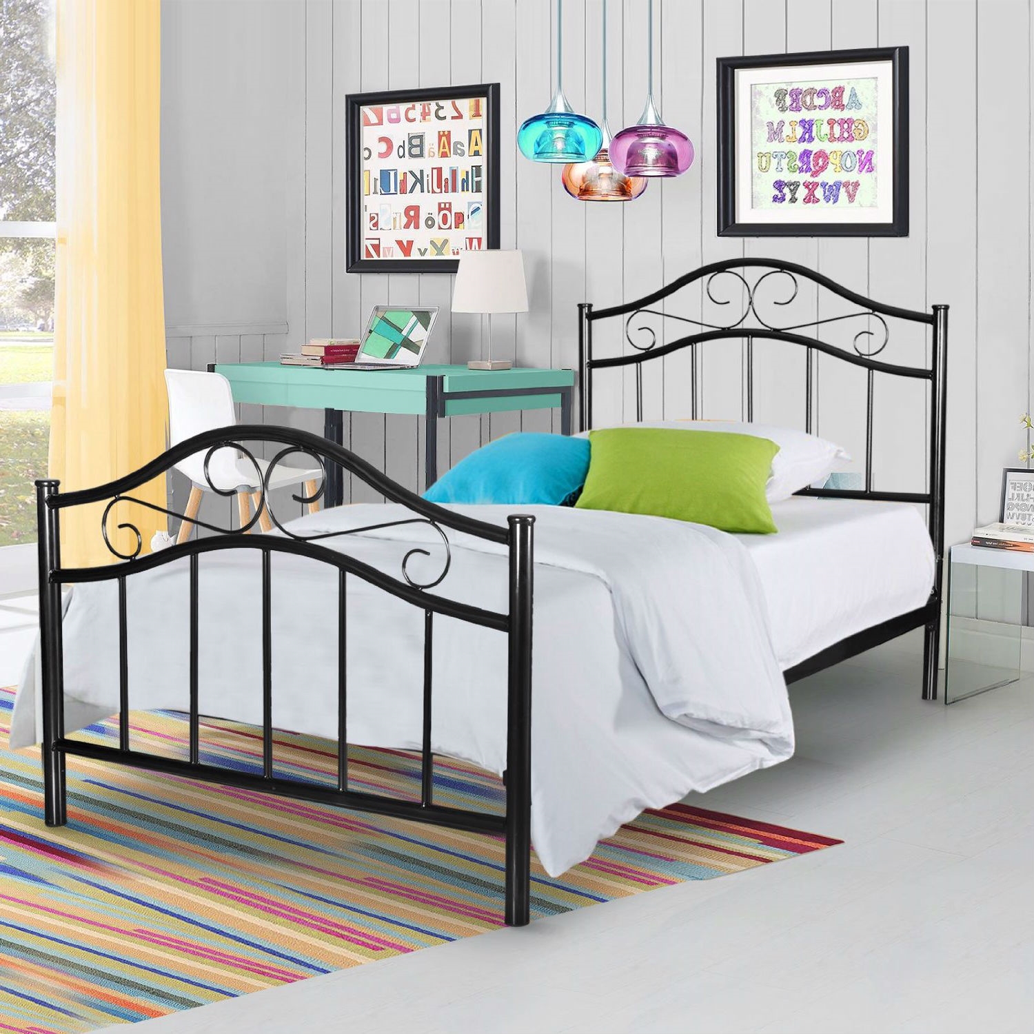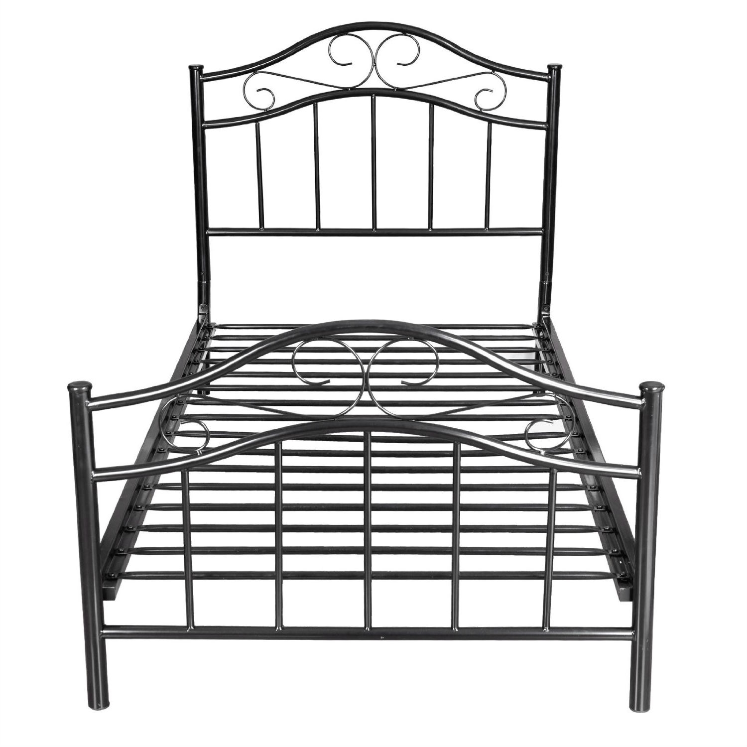 - Twin size Black Metal Platform Bed Frame with Headboard and Footboard