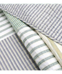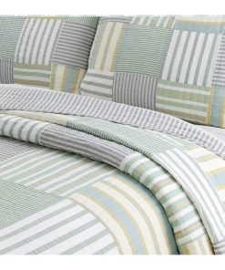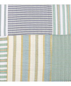 Create a beautiful tranquil welcoming place within your home with this Twin Size Soft Reversible Patches 100% Cotton Quilt Set. The balance of stripped patterns and calming colors tones are a perfect combination. A variety of horizontal and vertical stripped patterns in various shades of green, yellow, blue patchwork together in a square patchwork balance together. This cotton quilt set is reversible so that you can quickly and easily change the look of your room. Made completely of 100% Cotton. Easy-care machine-washable cotton material, this quilt set is easy and quick to launder.