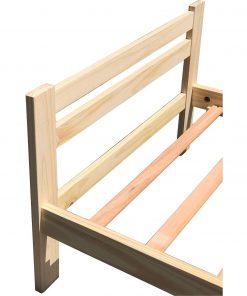 This Twin size Unfinished Solid Pine Wood Platform Bed Frame with Slatted Headboard is Ready to Assemble -Headboard/Footboard dimensions: H 26 1/2” x W 43 1/4” – Total Bed Length: 78” -Crafted from solid pine wood and hardwood slats. Ready to finish. Perfect for you wood painting project. You can varnish, paint or wax it. Or just leave it unfinished. Wood looks great. Each piece is sturdily built. – Not only a beautiful piece of furniture. It’s built to last! This beautiful piece of furniture is the perfect piece for your kids room. But it also suitable for adults as it is very resistant. It can be used for decades. With a simple and minimalist platform bed design, both boys and girls love this bed. Features hardwood slats for long endurance. -Brand new, packed on the original box. -Includes: Mattress and bedding are not included. Mounting hardware, screws, slats and side rails are included as well! Philips screwdriver required (not included). Similar products are sold at exclusive stores for double its price. We only supply reforested wood in due respect of our environment and wildlife. We make quality furniture at most competitive prices for people who loves wood worldwide. We sell wood to the world. Made from quality solid pine wood with hardwood slats. It’s built to last. We only supply reforested wood in due respect of our environment and wildlife. Convenient. Easy to assemble. Bed can be easily assembled and unassembled if you move to a new house. Each side rail comes in one piece for your convenience. Ready to finish. Perfect for you wood painting project. You can varnish, paint or wax it. Or leave it unfinished.