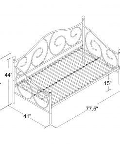 Whether you are looking for extra seating in the living room or a sleeper for overnight guests, this Twin size White Metal Day Bed Frame – 400 lb Weight Limit is the perfect fit. With round finial posts, a brushed metal frame and traditional scrollwork, this daybed has character that will add instant charm to any room. Sturdily constructed, the bed features metal slats and supporting legs for added support and comfort. No box spring required with this style of bed.