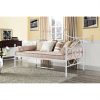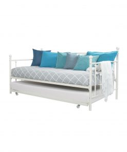 Tailor-made to have a unique modern style that is sophisticated, yet simple, this Twin size White Metal DayBed with Roll-out Trundle Bed can be accented to compliment any decor. Appealing to the eyes, the Twin size White Metal DayBed with Roll-out Trundle Bed is also handy for accommodating visitors with its roll-out trundle. Crafted with a sturdy metal frame and metal slats, this daybed accommodates any standard twin size mattress. Used as a sleeping area or relaxing area, for yourself or guests, this daybed comes out a winner on all fronts!