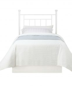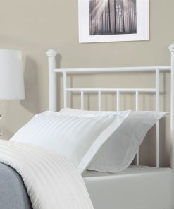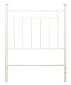 With elegant, simple lines, this Twin size White Metal Headboard with Simple Lines and Decorative Finals in white will be a welcome addition to any bedroom. Featuring decorative finials, the contemporary styling is appropriate for both children and adults. Combine the Metal Headboard with a Twin bed frame and Twin-sized mattress to complete the bed.