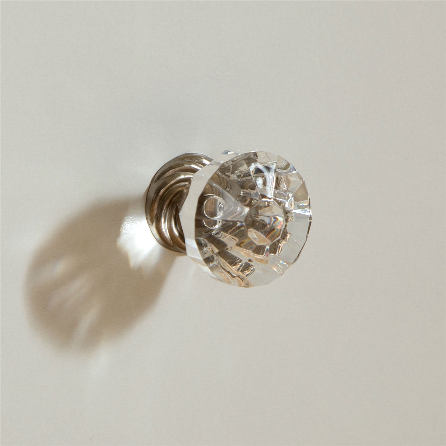 Three convenient storage drawers adorned with beautiful clear crystal knobs