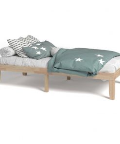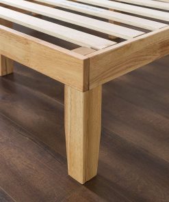 This Twin Solid Wood Platform Bed Frame in Natural Finish is beautifully simple and works well with any style of home décor. The 3.5 inch frame and legs are made of rubber wood to support your memory foam, latex, or spring mattress. The Twin Solid Wood Platform Bed Frame in Natural Finish is 14 inches high and designed for use with or without a box spring foundation. Stylish and strong support for your mattress at an affordable price.