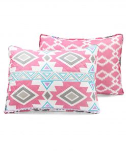 A little southwest inspiration brings this Twin Size American Indian Style Polyester Pink Blue Striped Reversible Quilt Sett to life. Generously sized for your comfort, this decorative sets the bar for style and trends. Reversable pattern for this 2-piece twin set. Each patterned stripe was inspired by a conventional southwestern print and then updated with a chic and colorful twist. Use this quilt set in your boho, maximalist or southwestern style kid’s room, teen’s room, dorm room or guest bedroom.