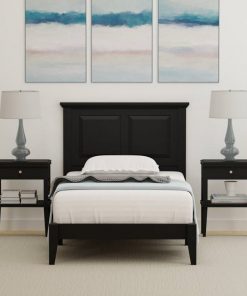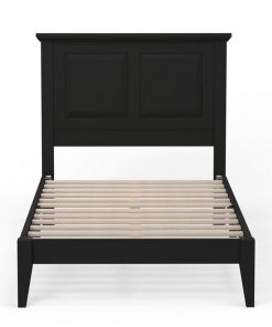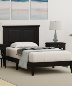 This Twin Size Retro Solid Oak Wooden Platform Bed in Black with prominent headboard is a must have for any bedroom! Inset panels and retro molding that adds refined elegance to any bedroom or guest room. It is crafted from solid oak, a naturally hard and durable wood. Platform bed sits on straight and slightly tapered legs that raise this bed almost 8 inches off the floor. This system of slats eliminates the need for a box spring and works best with any standard mattress (recommended 10 inches of thickness). Assembly is required.