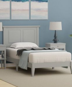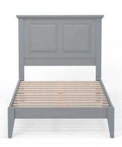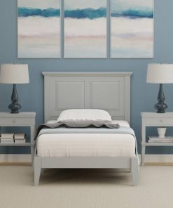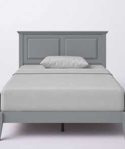 This Twin Size Retro Solid Oak Wooden Platform Bed in Grey with prominent headboard is a must have for any bedroom! Inset panels and retro molding that adds refined elegance to any bedroom or guest room. It is crafted from solid oak, a naturally hard and durable wood. Platform bed sits on straight and slightly tapered legs that raise this bed almost 8 inches off the floor. This system of slats eliminates the need for a box spring and works best with any standard mattress (recommended 10 inches of thickness). Assembly is required.