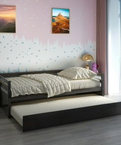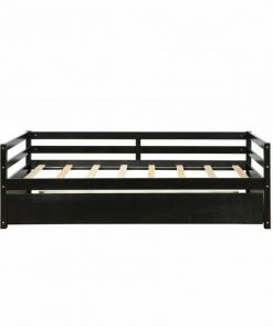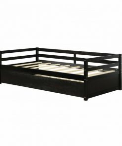 The Twin/Twin Dorm Style Trundle Daybed Platform Bed Frame in Espresso is perfect for any kids rooms, college dorm, or guest room. Multifunction daybed can be used as a sofa or 2 twin beds. Made with solid sturdy legs and thick slats, the daybed has a high weight capacity to firmly support your mattress without a box spring. Mattresses not included.