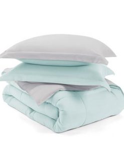 Elevate your bedroom or guest room with this classic Twin/Twin XL 2-Piece Microfiber Reversible Comforter Set Aqua/Grey. We love that this set comes in a range of colors, so you can find just the right look for your space. It’s also reversible, so you can switch up your look with ease. All pieces are made of 100% microfiber, which is lint-free, non-pilling, and resistant to wrinkles; they’re also machine washable, so keeping everything fresh and clean is a breeze. The comforter and shams are filled with 5.31 oz. fill weight polyester in a solid hue with a baffle box weave.