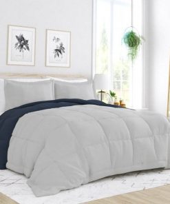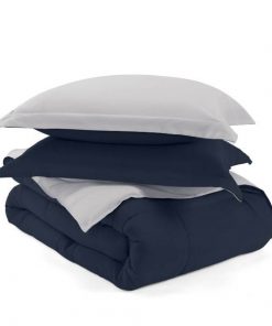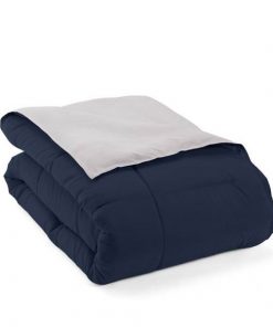 Elevate your bedroom or guest room with this classic Twin/Twin XL 2-Piece Microfiber Reversible Comforter Set in Navy/Grey. We love that this set comes in a range of colors, so you can find just the right look for your space. Its also reversible, so you can switch up your look with ease. All pieces are made of 100% microfiber, which is lint-free, non-pilling, and resistant to wrinkles; theyre also machine washable, so keeping everything fresh and clean is a breeze. The comforter and shams are filled with 5.31 oz. fill weight polyester in a solid hue with a baffle box weave.