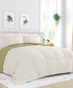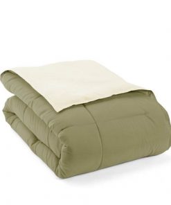 Elevate your bedroom or guest room with this classic Twin/Twin XL 2-Piece Microfiber Reversible Comforter Set in Green/Cream. We love that this set comes in a range of colors, so you can find just the right look for your space. Its also reversible, so you can switch up your look with ease. All pieces are made of 100% microfiber, which is lint-free, non-pilling, and resistant to wrinkles; theyre also machine washable, so keeping everything fresh and clean is a breeze. The comforter and shams are filled with 5.31 oz. fill weight polyester in a solid hue with a baffle box weave.