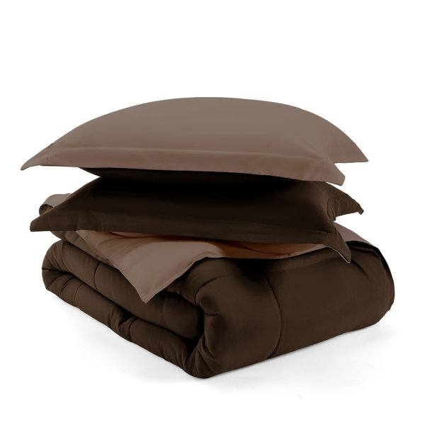 Elevate your bedroom or guest room with this classic Twin/Twin XL 2-Piece Microfiber Reversible Comforter Set in Light / Dark Brown. We love that this set comes in a range of colors, so you can find just the right look for your space. It’s also reversible, so you can switch up your look with ease. All pieces are made of 100% microfiber, which is lint-free, non-pilling, and resistant to wrinkles; they’re also machine washable, so keeping everything fresh and clean is a breeze. The comforter and shams are filled with 5.31 oz. fill weight polyester in a solid hue with a baffle box weave.