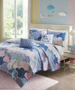 Twin/Twin XL Kids Blue Pink Unicorn Clouds Quilt Coverlet Bedspread Set