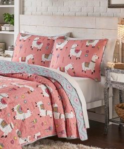 Take the guesswork out of decorating with this Twin/Twin XL Pink Blue Reversible Floral Llama Cotton Quilt Set. Made from 100% cotton material this quilt features Llamas and flowers on the coral ground. Reverses to pink floral diamond on pale blue. Machine wash in cold water on a gentle cycle and tumble dry on low.