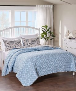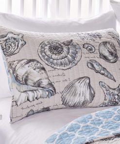 Time for a bedroom beach escape makeover! Beach scenes and fresh ocean breezes are brought to mind with this stunning 2 Piece Microfiber Beach Shells Coastal Quilt Set, Twin/Twin XL . This quilt set offers seashells and dreamy poetic phrases to lull you into a seaside slumber. Colors include blue, alabaster, taupe, white and charcoal on a linen ground. Reverses to a complimentary fishnet print. Decorative quilting enhances the durability of each piece. Oversized for better coverage on todays deeper mattresses.