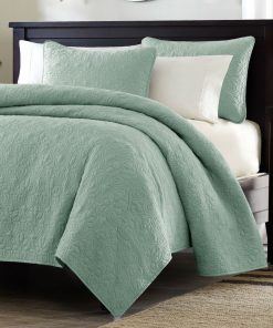 This Twin / Twin XL size Coverlet Quilt Set with Sham in Seafoam Blue Green Brushed Fabric is the perfect coverlet to use as a layering piece or an alternative to your comforter for a new solid look. The classic stitch pattern pairs easily with your existing décor and will sure to add a new decorative element to your bedroom. The coverlet has 100% cotton fill and the face and the reverse of the coverlet are a super soft brushed fabric.