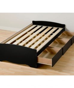 This Twin XL Platform Bed Frame with 3 Storage Drawers in Black is 5 inches longer than a standard twin making it ideal for teenagers and College students. Underneath are 3 large storage drawers (20” depth) that run on smooth running metal drawer glides. Every room needs more storage and this is a great place to add it! Wood slats positioned lengthwise distribute body weight evenly and take the place of a box-spring, so the bed needs only a mattress. Three Drawers are located on one side so that the bed can be positioned left or right to suit any bedroom layout. Available in two colors: Espresso finish, an attractive laminate that simulates a rich, dark wood finish or Midnight Black laminate. Please specify when ordering. This product is made from composite woods with overlay laminate and plywood slats. It ships flat-packed (in two cartons) and assembly is required. Detailed and easy-to-follow instructions are included.
