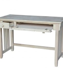 • Unfinished Wood Computer Desk with Pull-Out Keyboard Tray and Drawer