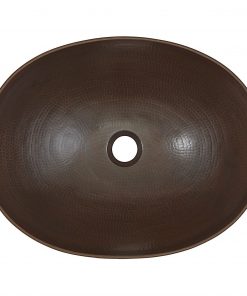 Vessel bathroom sinks are reminiscent of a time before running water. This Vessel Style Solid Copper Bathroom Sink Oval 18 x 14 inch artfully calls back to that time in pure handcrafted copper form. With hassle-free installation and effortless care, a copper sink is designed to fit your lifestyle and be a focal point in your bathroom. With a lifetime warranty, this copper sink is designed to be an affordable above counter vessel solution for any bathroom.