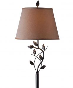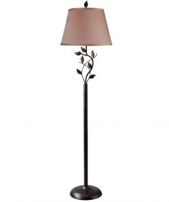 These leafy vines have a lighthearted appeal. Delicate and reminiscent of spring, this Vine Leaves Rubbed Bronze Finish Floor Lamp with 15-inch Gold Tapered Shade will grown on you. 15-inch diameter gold tapered shade tops this lamp. Uses one 150-watt three-way bulb with a three-way socket switch.