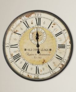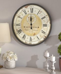 The Vintage Oversized Distressed Metal Wall Clock is an eye catching oversized wall clock. Encased in wrought iron, this design features a wood face bearing distressed details and roman numerals tied together by spade style hands. It’s sure to grab glances no matter where it’s placed.