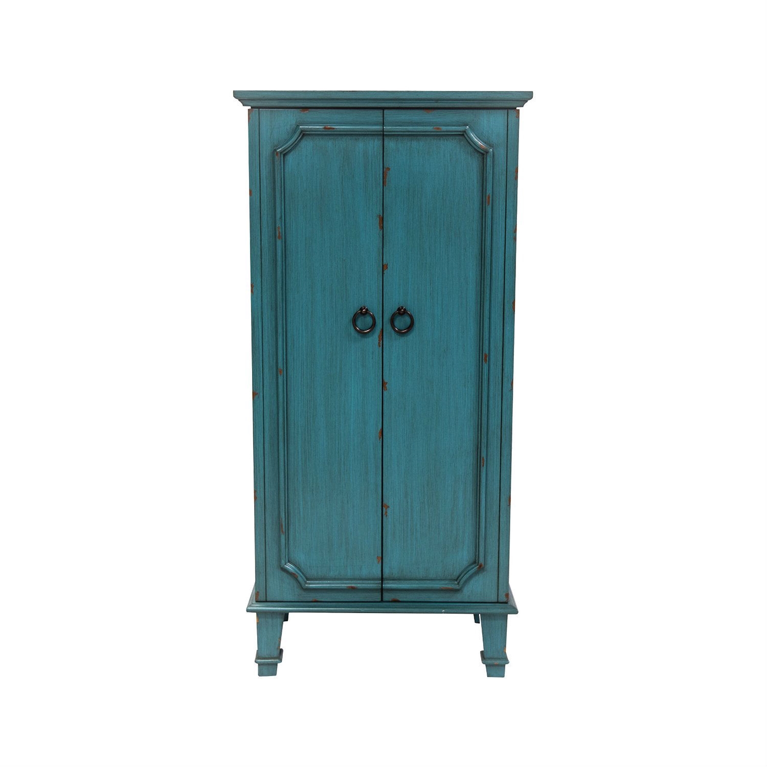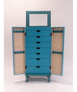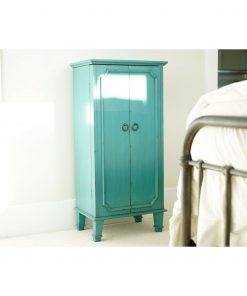 With its vintage turquoise hand painted finish, gorgeous classic details and antique hardware drawer pulls, this Vintage Turquoise Hand Painted Jewelry Armoire with Antique Drawer Pulls is the perfect addition to any home or apartment. On the top, its hinged lid lifts to reveal a convenient mirror.