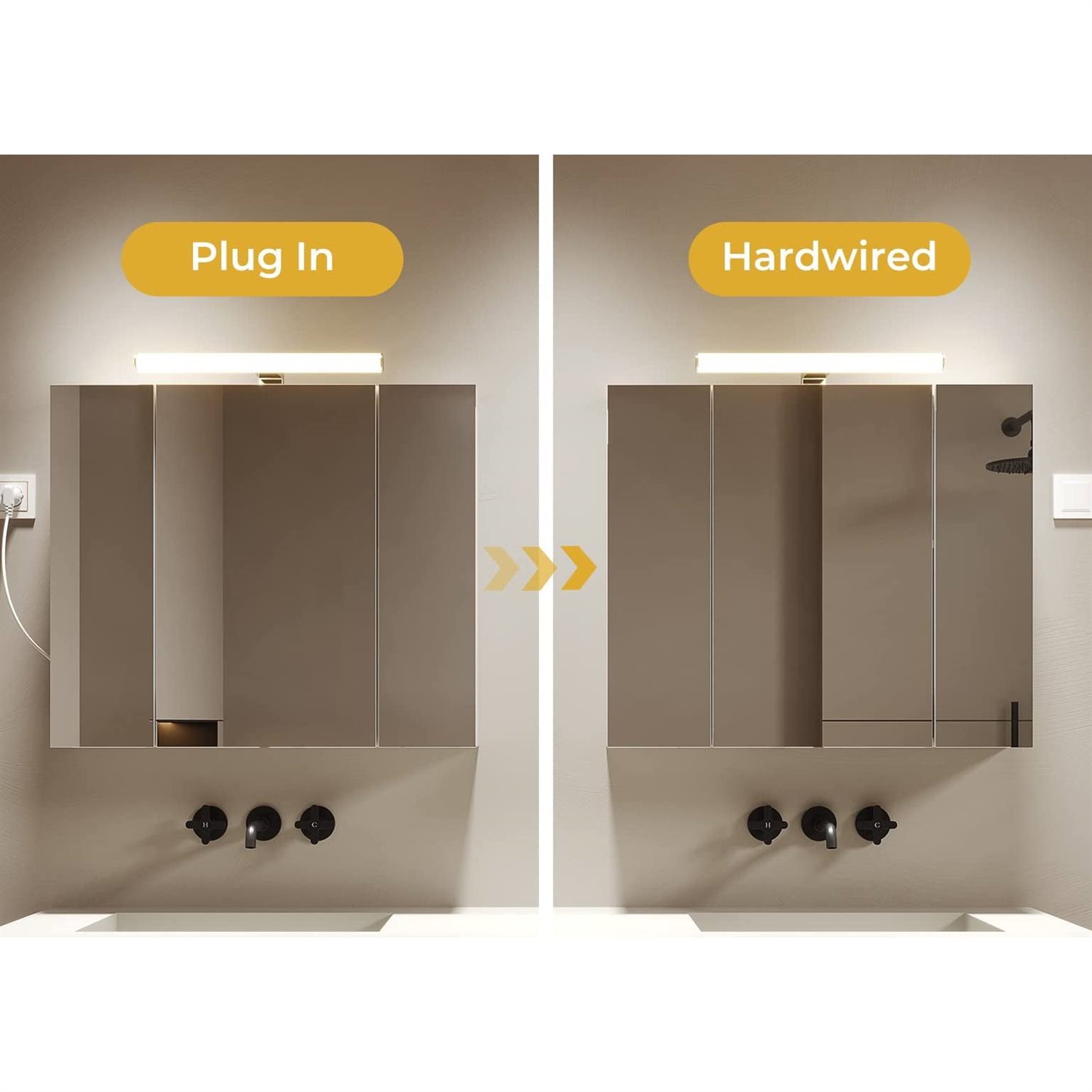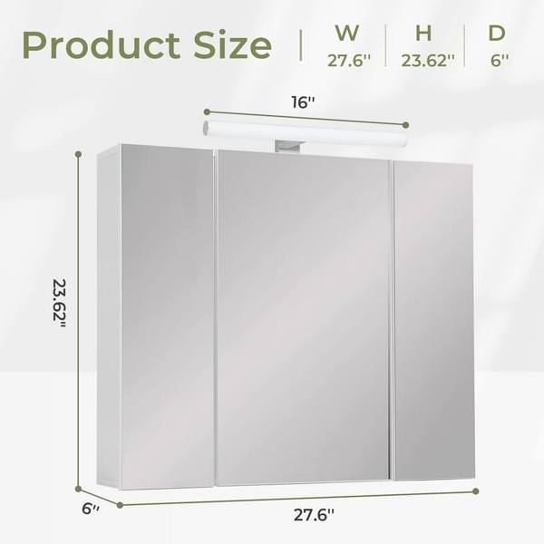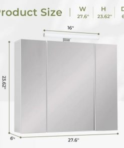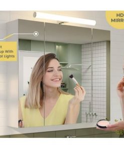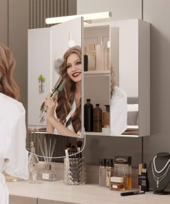 Get ready in style and with optimal lighting with this new mirror cabinet with LED lighting! Add technology elements and convenience to any bathroom. See yourself clearly with the flip a switch. The door in the middle of the mirror cabinet has a convenient combination of light switch and socket. Not only does it keep water out of the socket, but it also makes it easy to turn the LED light on/off. Mirror cabinet uses high-quality MDF panels (E1 level) and IP 44 rated, enough to support a long service life. High-quality stainless steel hinges are corrosion-resistant, and there is no sound when opened. The waterproof and moisture-proof painting process, makes the storage wall cabinet very suitable for use in bathrooms, kitchens.