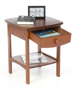 Bedeck your contemporary interiors with this Walnut Wood Finish 1-Drawer Bedroom Nightstand Bedside Table. Simple yet graceful, this nightstand is made out of manufactured wood for strength and durability. Flaunting delicate curves and four straight feet, this nightstand is available in a variety of finishes to choose from. It features one spacious drawer with wooden glides and safety stops that can be used to keep anything from handy utilities to bedtime essentials. Walnut Wood Finish 1-Drawer Bedroom Nightstand Bedside Table also has a small open shelf at the bottom, which can accommodate your books or magazines. Wipe this nightstand with a clean, dry cloth to keep dust and grime away.