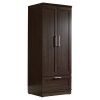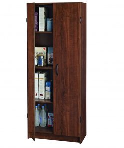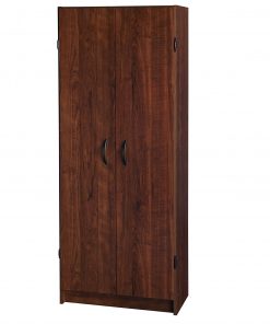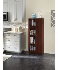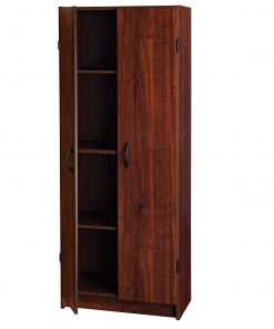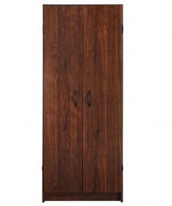 Store canned foods, storage containers, cookbooks, cleaning supplies and more. This Wardrobe Cabinet with Shelves in Dark Cherry Wood Finish Bedroom Kitchen or Bathroom helps you create functional kitchen, laundry or utility room storage options. Instantly transform a dorm room or turn a small apartment into efficient living space.