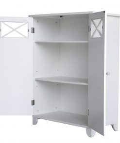 This White 2-Door Bathroom Floor Cabinet with Adjustable Storage Shelf would be a great addition to your home. It has an elite floor cabinet provides a fixed and an adjustable shelf.