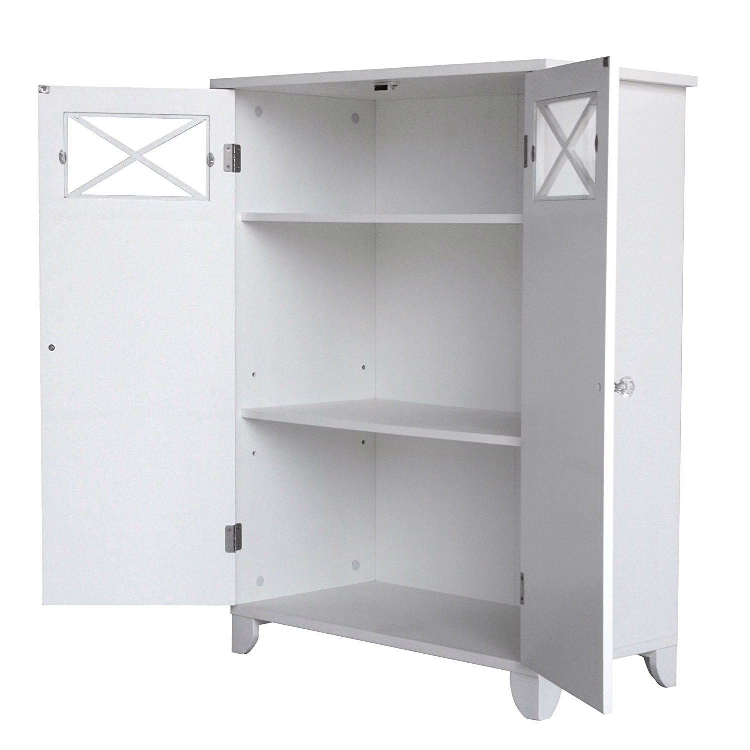 White 2-Door Bathroom Floor Cabinet with Adjustable Storage Shelf