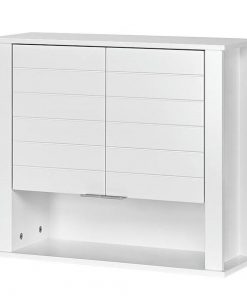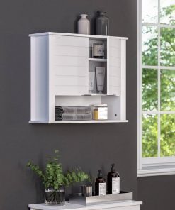 Maximize bathroom storage space with this chic White 2 Door Wall Mounted Bathroom Storage Cabinet. Perfect for storing toiletries, tissues, and extra hand towels, this cabinet features one open shelf and an interior adjustable shelf, customizing the shelf heights to your storage needs. This White 2 Door Wall Mounted Bathroom Storage Cabinet gives your main/guest bathroom or a style upgrade while freeing up your floor space. It’s made from engineered wood in a neutral grey finish that complements any color palette you can dream up. It features crown molding at the top for a decorative touch, and its surface can easily hold candles and accent pieces. The open shelf below is ideal for washcloths and soap dispensers. And the slatted cabinet doors open up to reveal extra space for everything from towels to toilet paper. The cabinet comes with wall-mounting hardware to make installation a breeze.