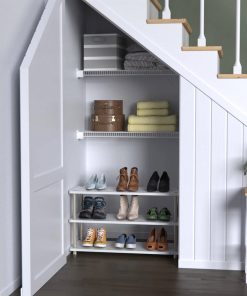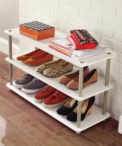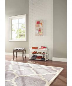 The White 3-Shelf Modern Shoe Rack – Holds up to 12 Pair of Shoes is a versatile solution to store shoes, inside or outside of your closet. Its tool-free design makes getting organized quick and easy. The modern style with sturdy, rounded wood shelves and metal accents accommodates a variety of shoe types. Easily organize shoes, accessories, hats, and purses. Consider a larger option if youre looking to store large shoes (Mens Size 13 or over). Check out the You Might Also Need section for an alternative.