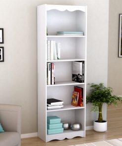 White 72-inch High Bookcase with Soft Arches and 5 Shelves